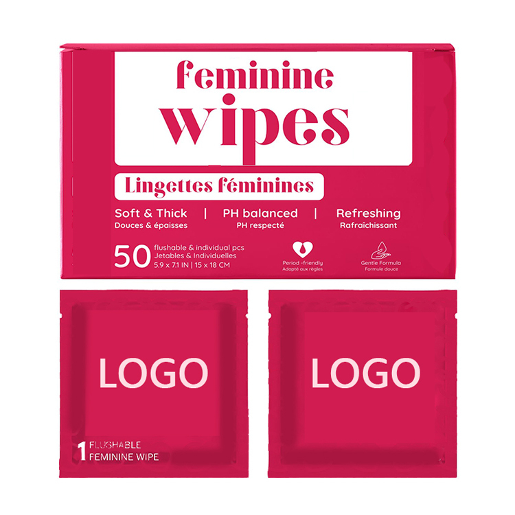 कस्टमाइज्ड 50 पैक व्यक्तिगत पैकेजिंग सुगंधित स्त्री अंतरंग वाइप्स